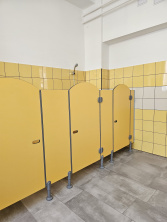 Sportlétesítmények, wellness fürdők kiszolgáló helyiségeiben épített HPL kompaktlemez válaszfalak.