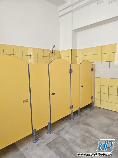 Tömör vízálló HPL kompaktlemezekből kialakított válaszfalrendszer. Helyszíni méretek alapján zuhanykabinok, WC válaszfalak kialakítására készül.